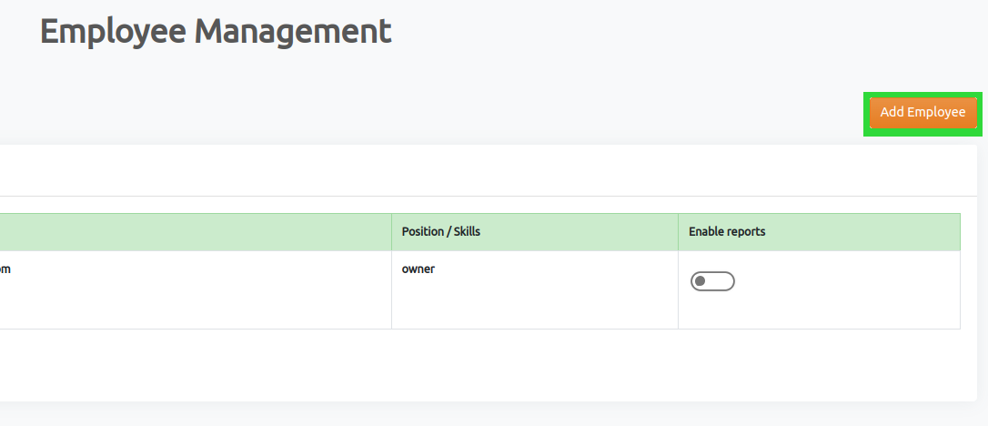 - Click add employee at the top right of the employee lists / table.